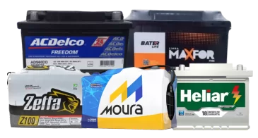 Trabalhamos com as principais marcas de baterias automotivas — Moura, Heliar, Zetta e ACDelco — atendendo carros, motos e caminhões.